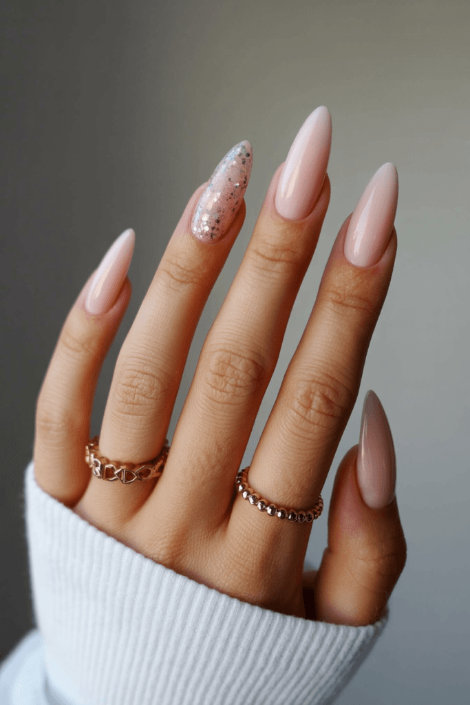 17. Natural Glitter Accent Nails