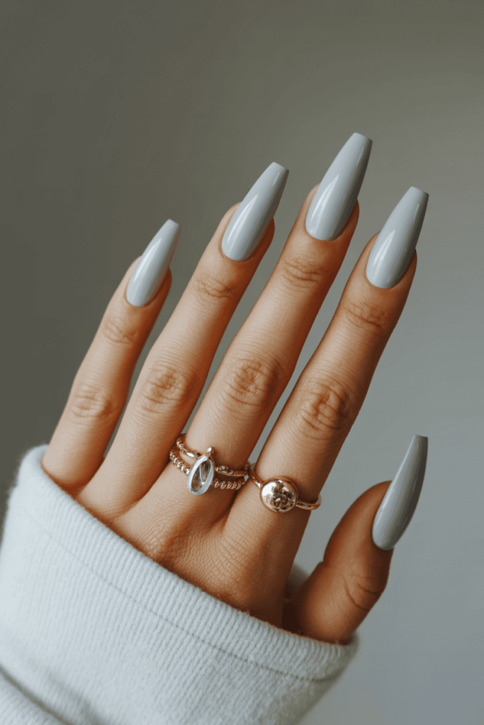Graue Nägel wirken modern und minimalistisch.
