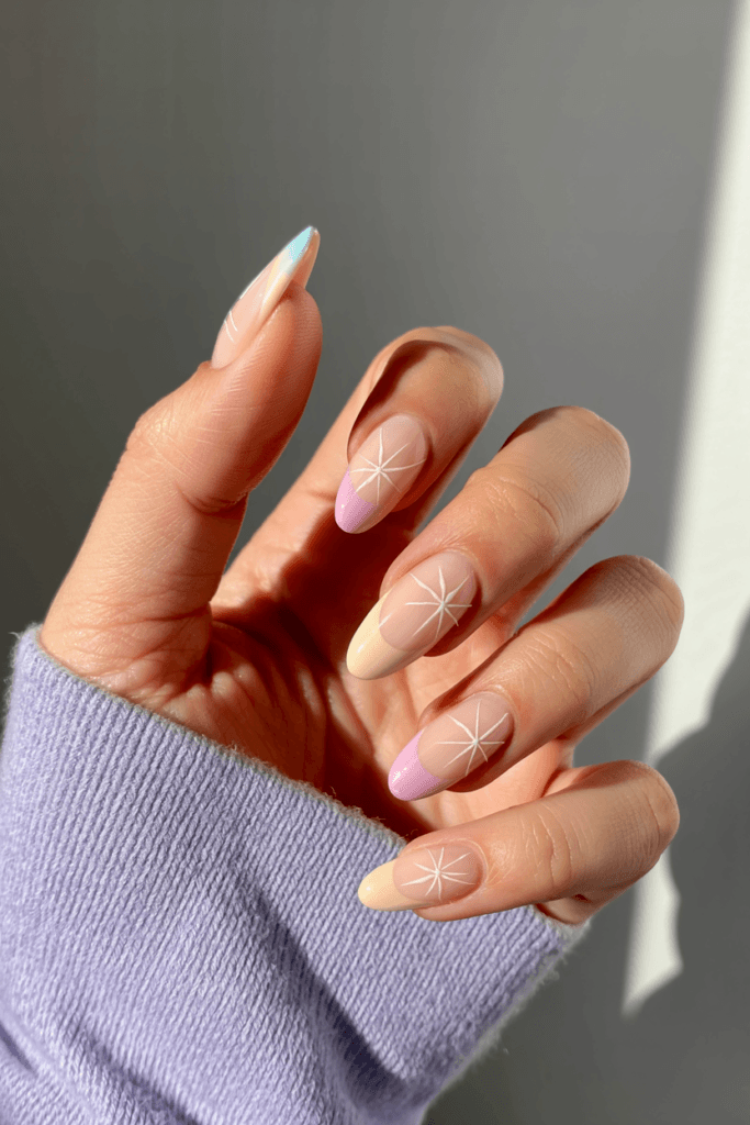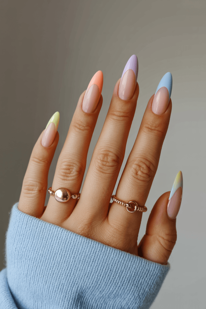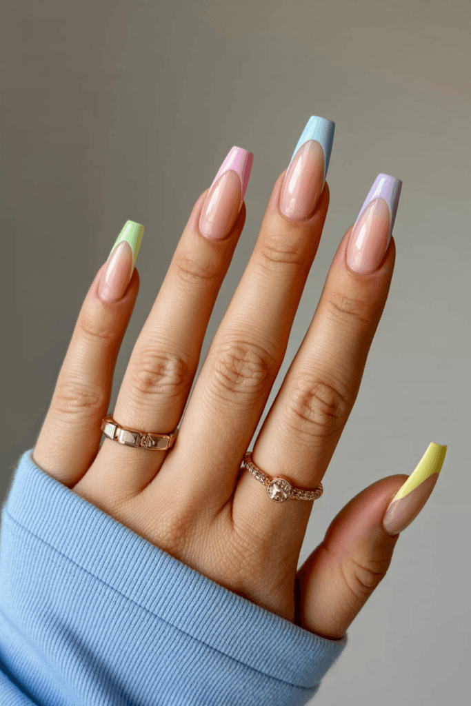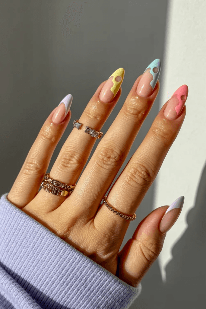 Jeder Nagel bekommt eine andere Pastellfarbe.