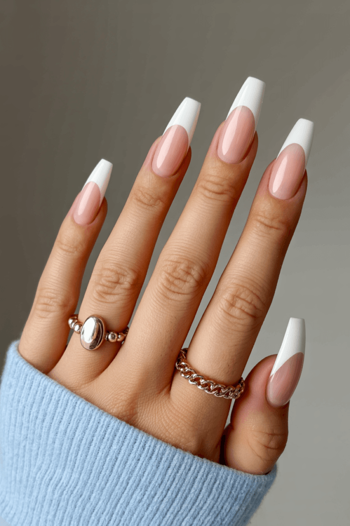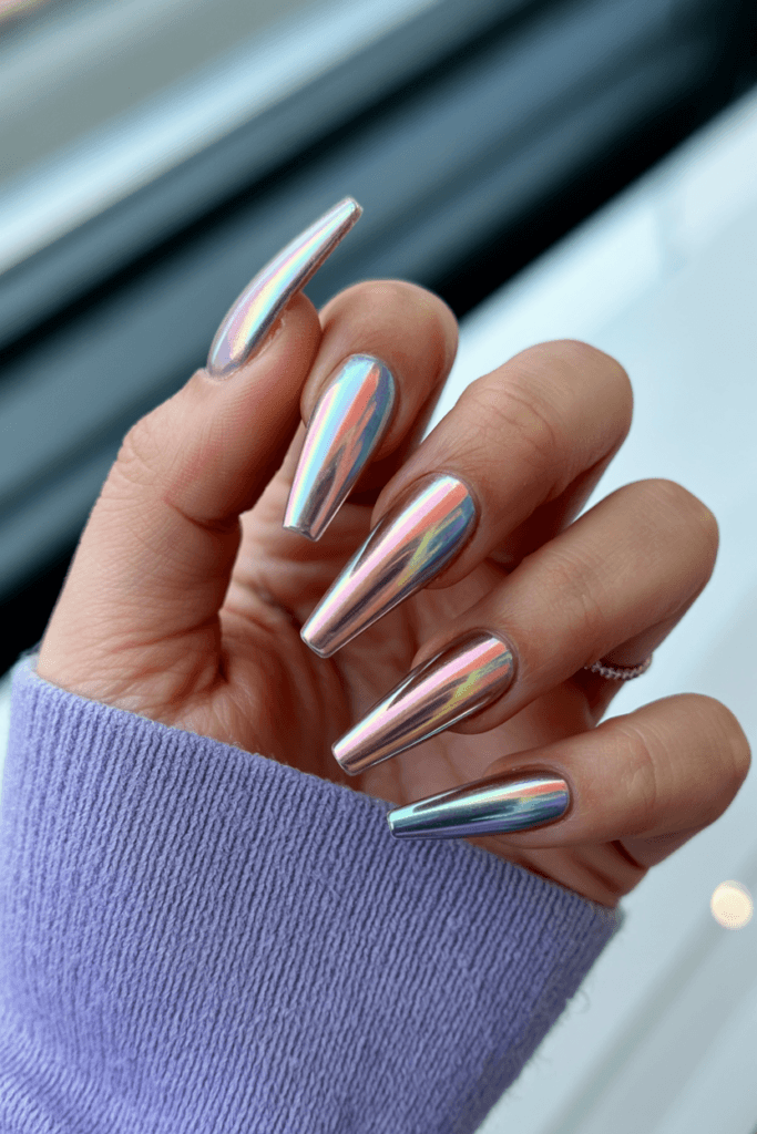Lange Nägel kommen besonders gut in mandelförmiger oder Coffin-Form zur Geltung. Diese Formen lassen die Hände länger und eleganter erscheinen.