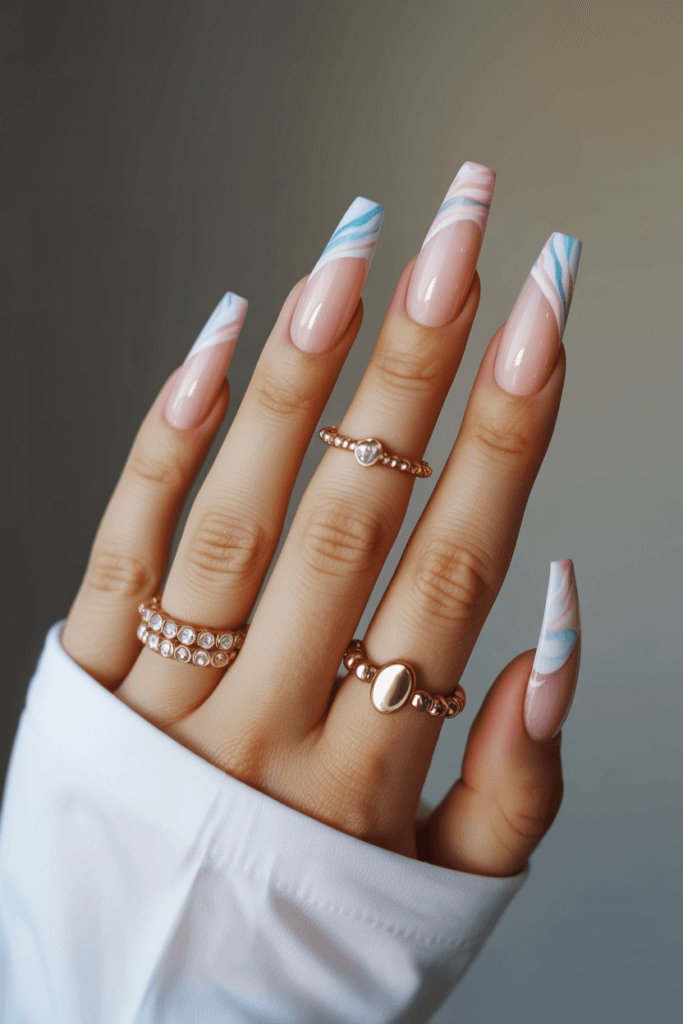 Besonders auf langen Nägeln wirken diese Designs besonders elegant und bieten viel Raum für kreative Nail Art.
