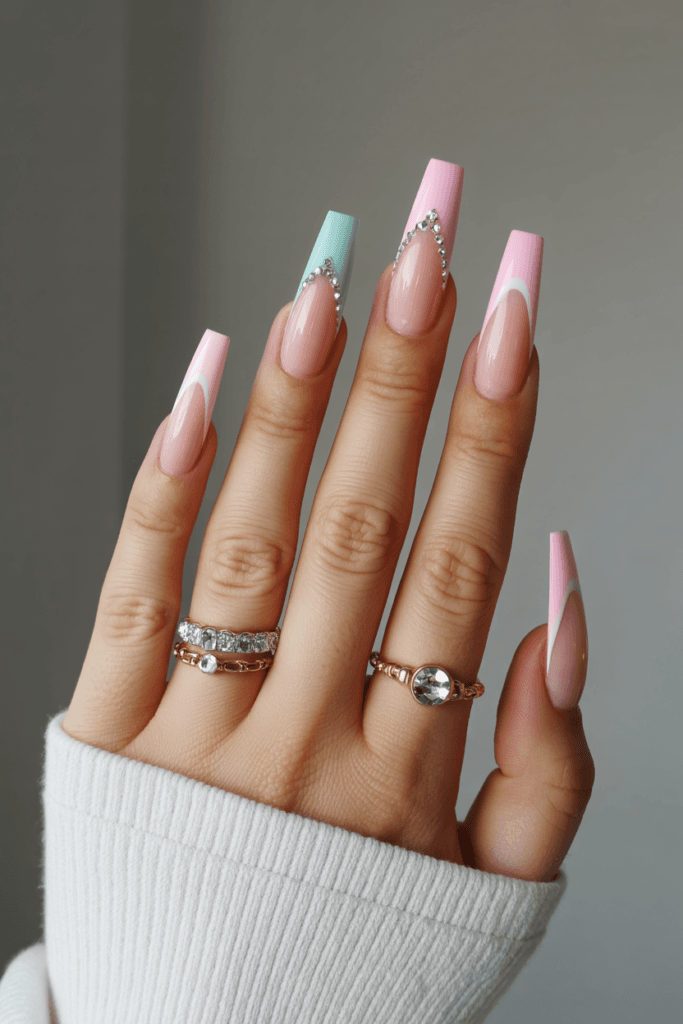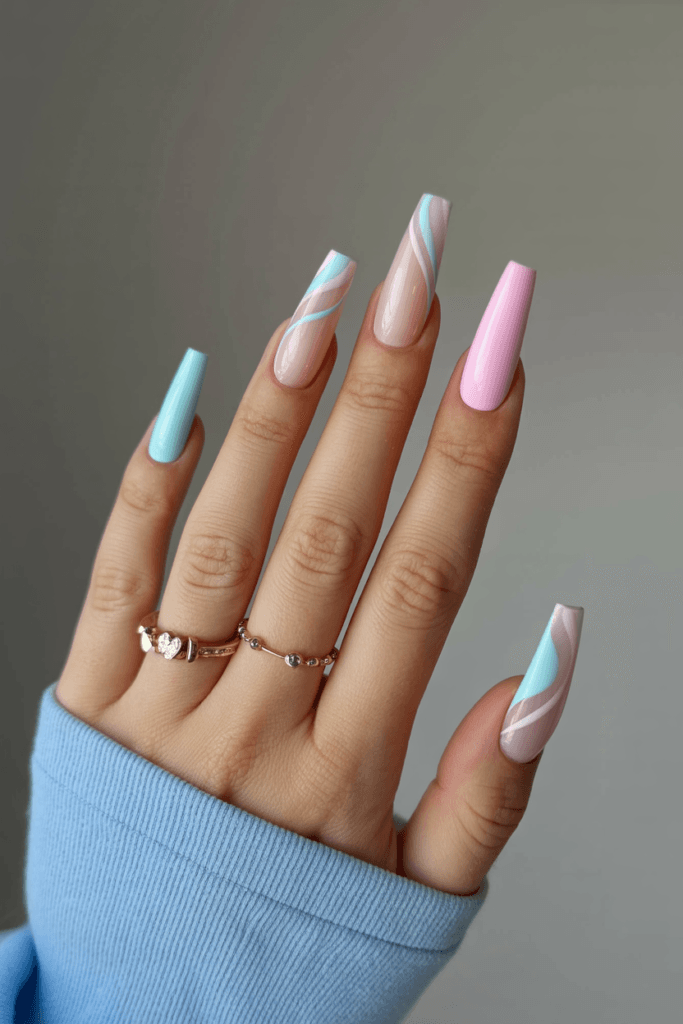 Ein weiterer wichtiger Trend sind lange Nägel, die viel Raum für elegante Designs bieten. Lange Coffin Nails, mandelförmige Nägel oder Stiletto-Formen wirken besonders feminin und lassen Pastellfarben noch intensiver erscheinen. Gleichzeitig können kleine Details wie Blumen, feine Linien oder Glitzerakzente auf langen Nägeln besonders stilvoll wirken.