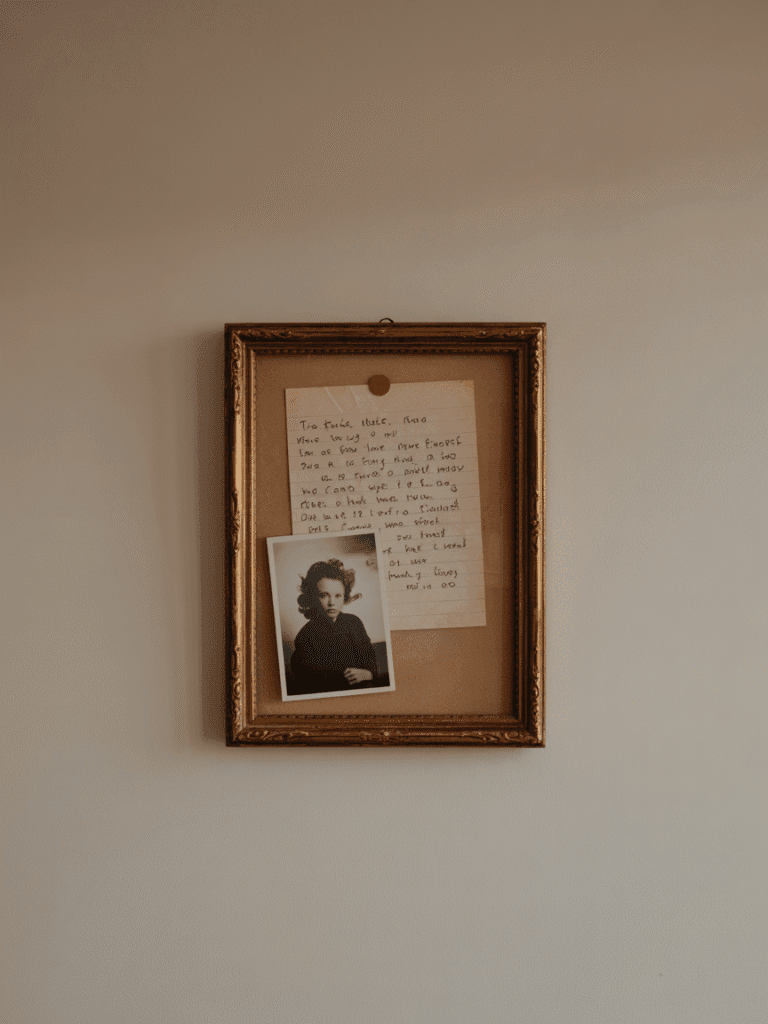 Ein schöner Rahmen, ein Regalbrett oder eine kleine Vitrine kann persönliche Dinge sichtbar machen, ohne dass es unruhig wirkt.