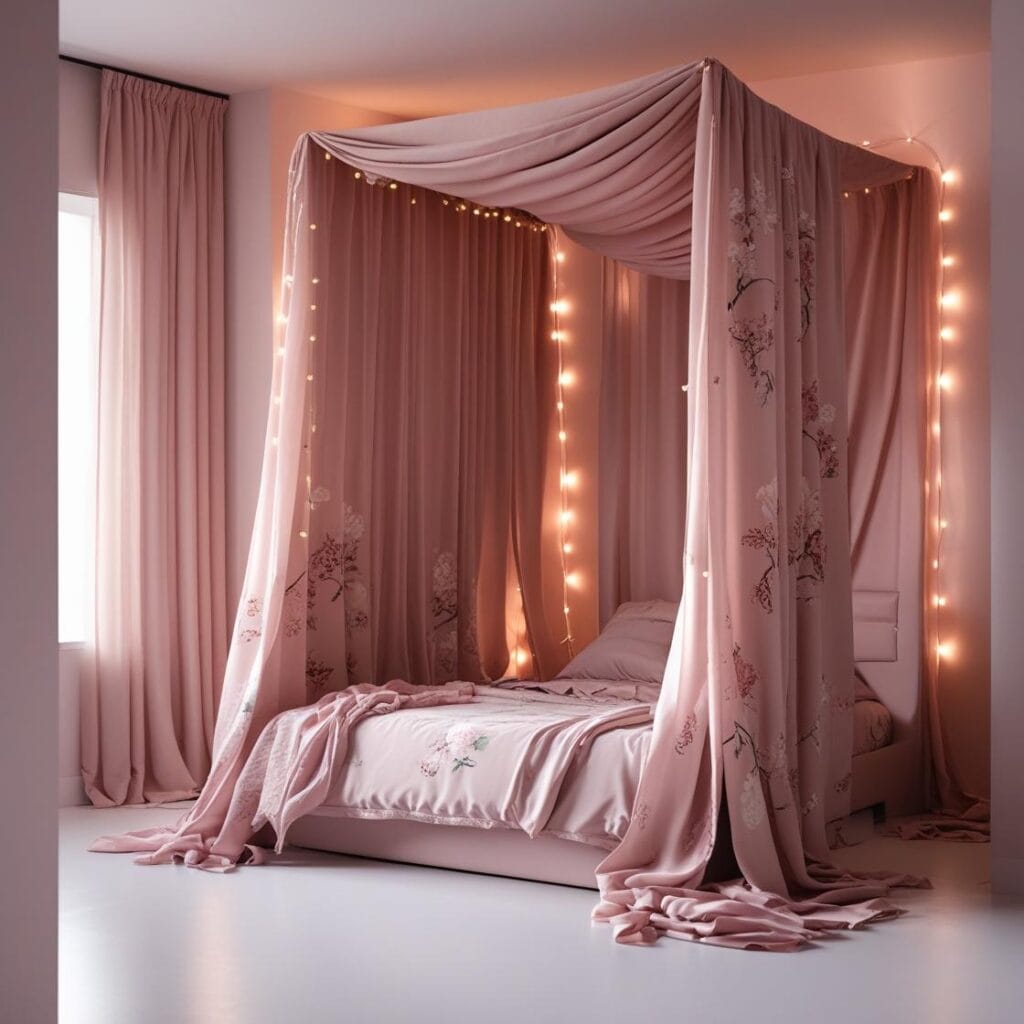 🕯️ Pinke Bett Gardine– ansehen