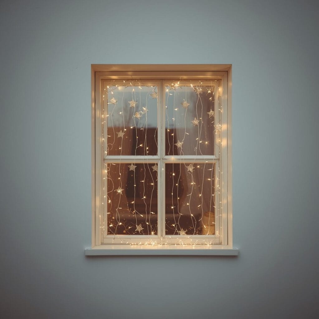 - Eine Lichterkette am Fensterrahmen befestigen.