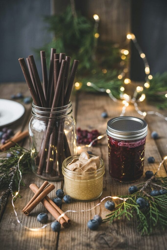 - Kleine Anhänger mit „Frohe Weihnachten“ oder Rezeptnamen