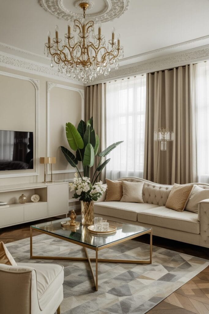 Der Glamour Stil steht für Luxus, Glanz und Perfektion, ohne überladen zu wirken. Er vereint Art Déco-Elemente, moderne Eleganz und einen Hauch Hollywood-Chic.