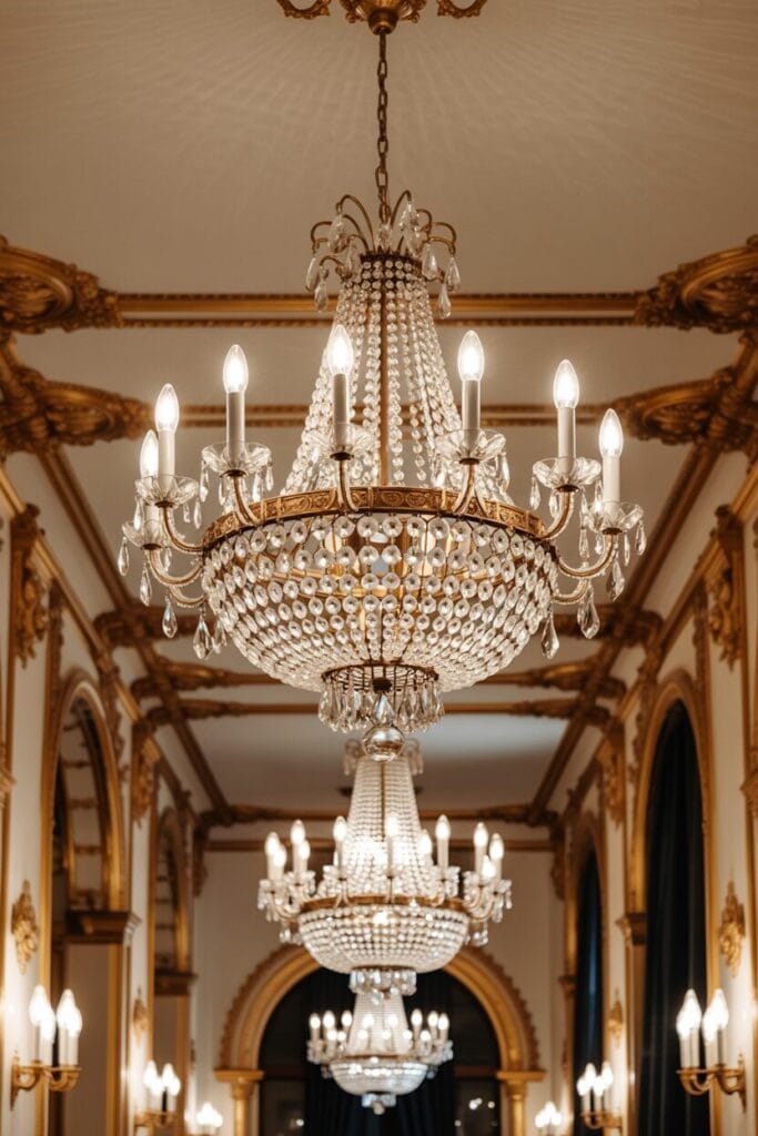 ✅ Do: Kristalllüster, goldene Stehleuchten, Spiegelbeleuchtung.