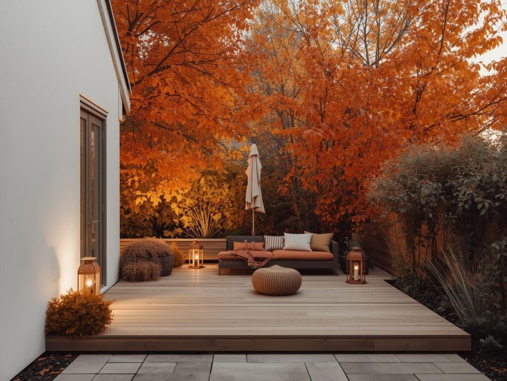Ein Herbstgarten kann auf 5 m² Terrasse genauso gemütlich wirken wie auf einem großen Grundstück. Wichtig ist, verschiedene Zonen zu schaffen: