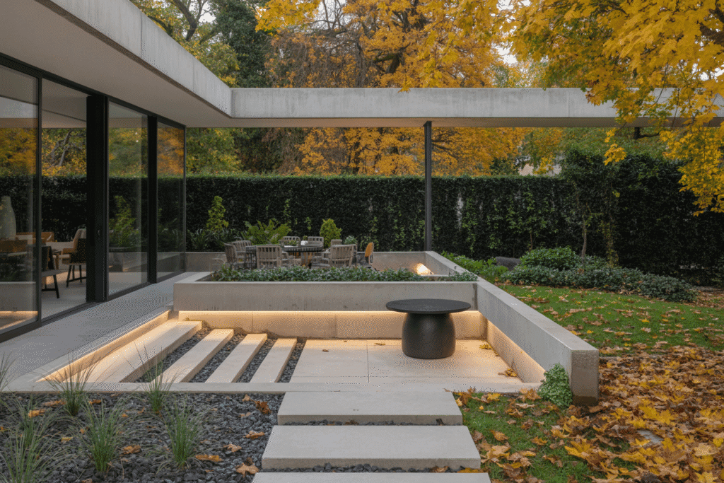 - Modern – Beton, klare Linien, LED-Beleuchtung