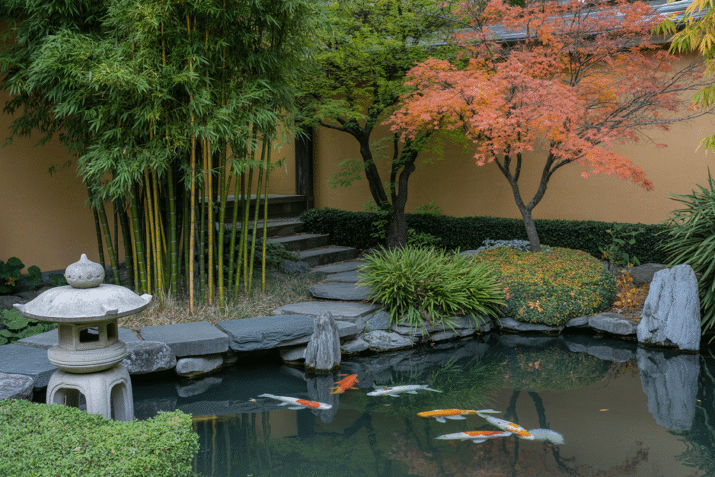 - Asiatisch – Bambus, Ahorn, Zen-Garten