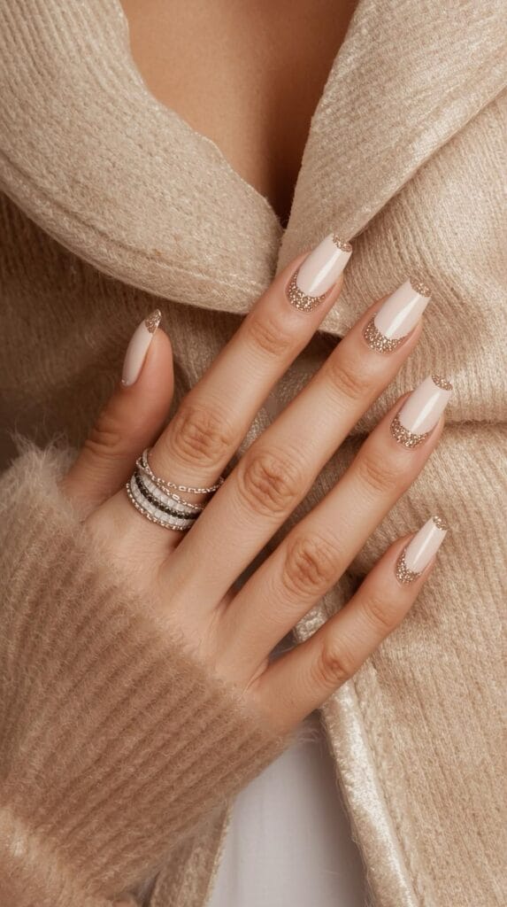 - French Nails mit Twist (z. B. goldene Spitze oder matte Basis)