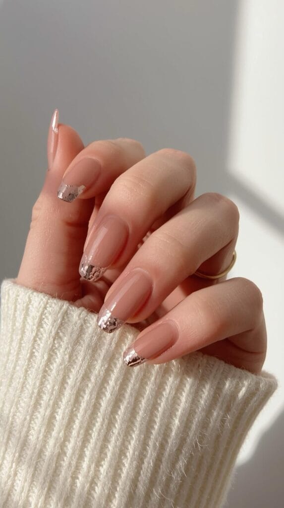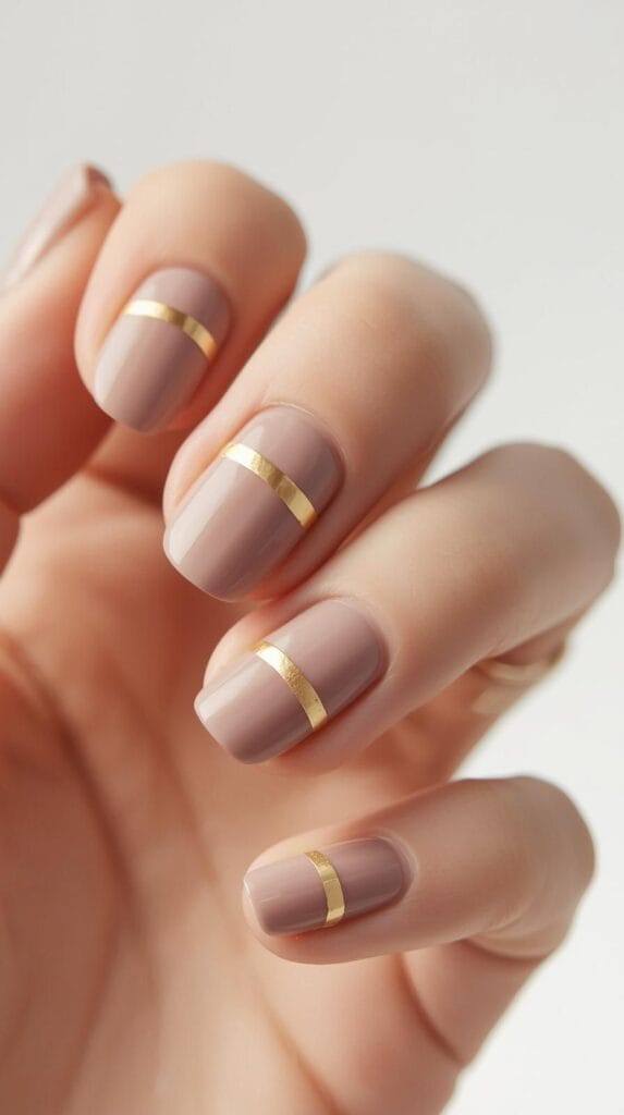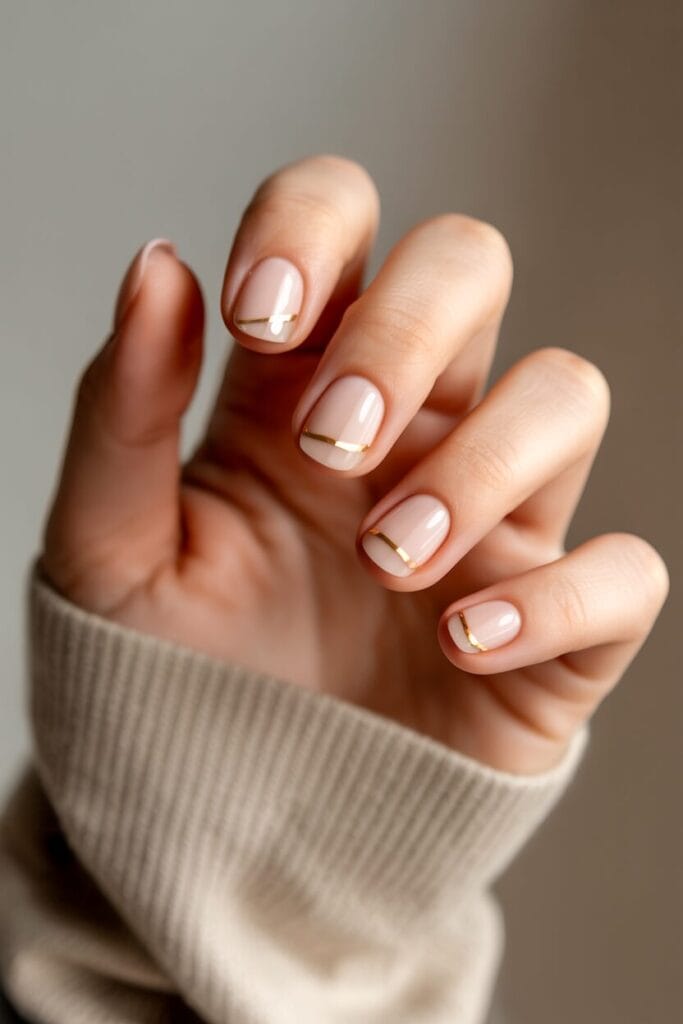 Wer es besonders elegant mag, kombiniert Nude-Nägel mit einem feinen Goldrand – schlicht und luxuriös zugleich.