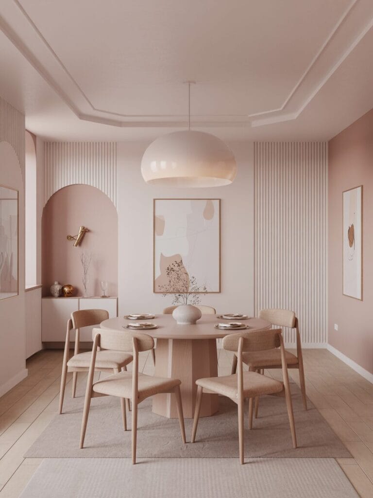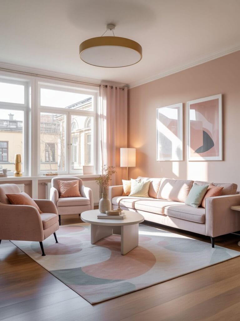 Die sanften Nuancen von Pastelltönen wie Rosé, Mint, Apricot oder Himmelblau bringen Leichtigkeit und Frische in den Raum. Kombiniert man sie mit goldenen Akzenten, entsteht ein edler Look, der nie aufdringlich wirkt. Gold sorgt für Wärme, Glanz und einen Hauch von Luxus, während Pastellfarben Ruhe und Harmonie ausstrahlen.