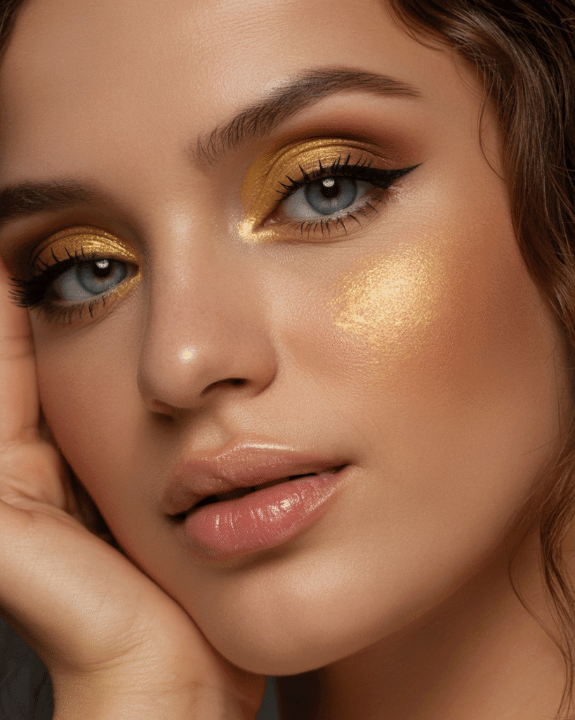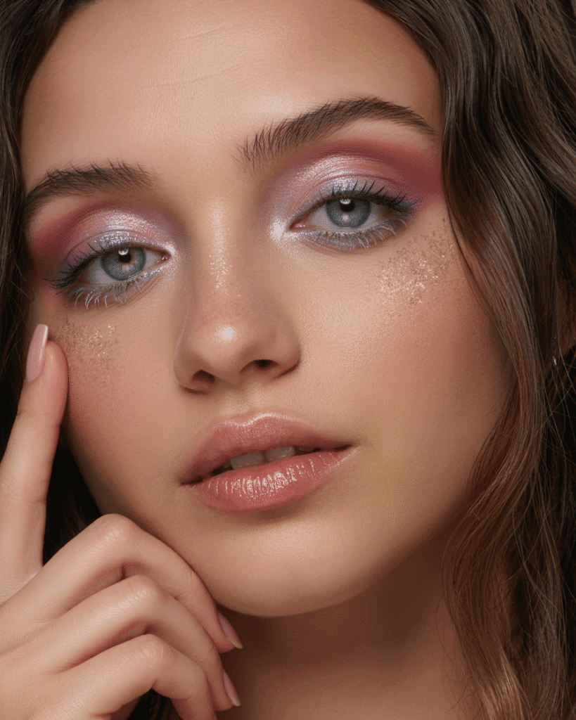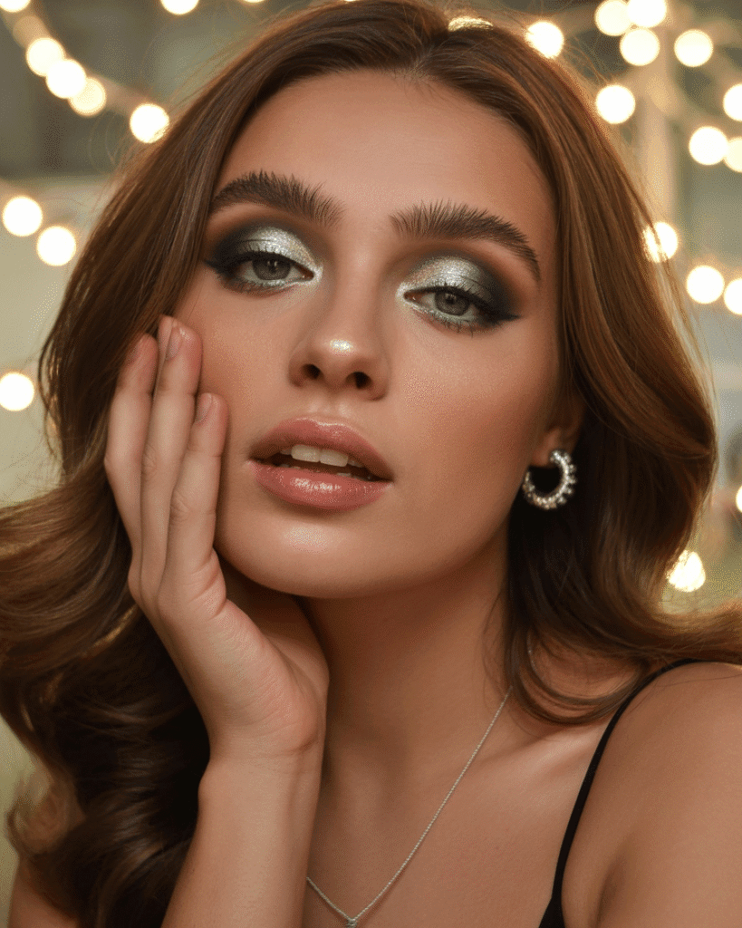 Ein weiterer Trend sind glitzernde Akzente. Sei es ein Hauch von Glitzer auf den Augenlidern oder ein funkelnder Lippenstift – Glitzer ist ein Muss für Silvester. Man kann mit verschiedenen Farben und Texturen experimentieren, um einen individuellen Look zu kreieren, der sowohl auffällig als auch stilvoll ist. Besonders beliebt sind auch Metallic-Farben, die den Lippen und Augen einen besonderen Glanz verleihen.