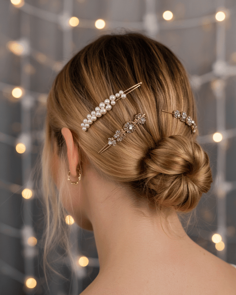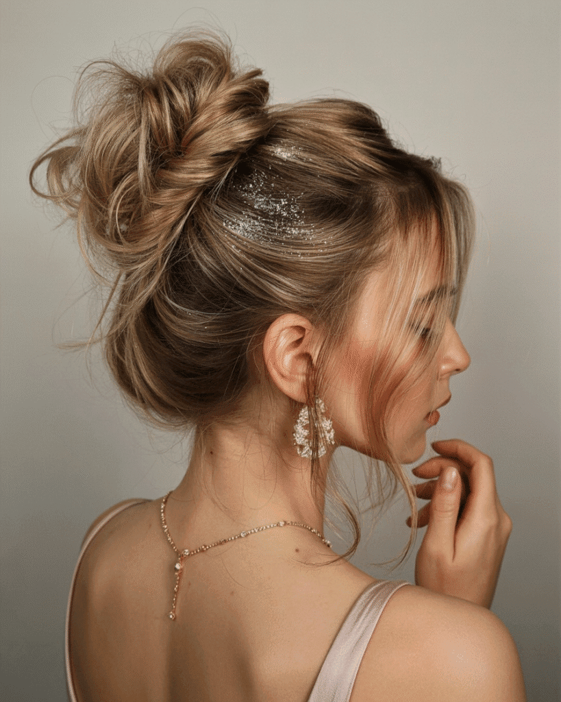 Zusätzlich sind Zöpfe ein großes Thema in diesem Jahr. Ob als geflochtener Kranz um den Kopf oder als seitlicher Zopf, sie können sowohl elegant als auch verspielt sein. Zöpfe sind perfekt, um einen persönlichen Stil auszudrücken und können mit verschiedenen Haaraccessoires kombiniert werden. Um die Frisur zu vervollständigen, könnten Haarspangen mit Sternen oder Perlen verwendet werden, um dem Look einen glamourösen Touch zu verleihen.