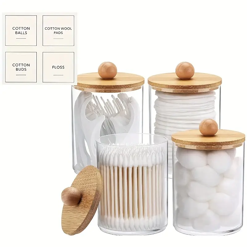 - Gläser mit Holzdeckel für Wattepads und Badezusätze