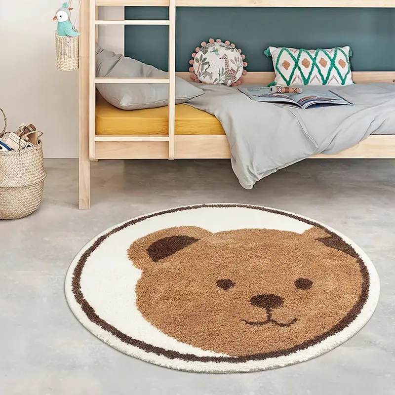Ein Teppich in Bärenform, ein gemütlicher Sessel, sanftes Licht und zarte Farben machen den Raum magisch.