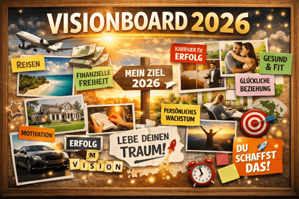 In diesem Beitrag erfährst du Schritt für Schritt, wie du ein Visionboard für 2026 erstellen kannst, das nicht nur optisch überzeugt, sondern auch psychologisch wirkt, emotional bindet und dich konsequent in die Umsetzung bringt.