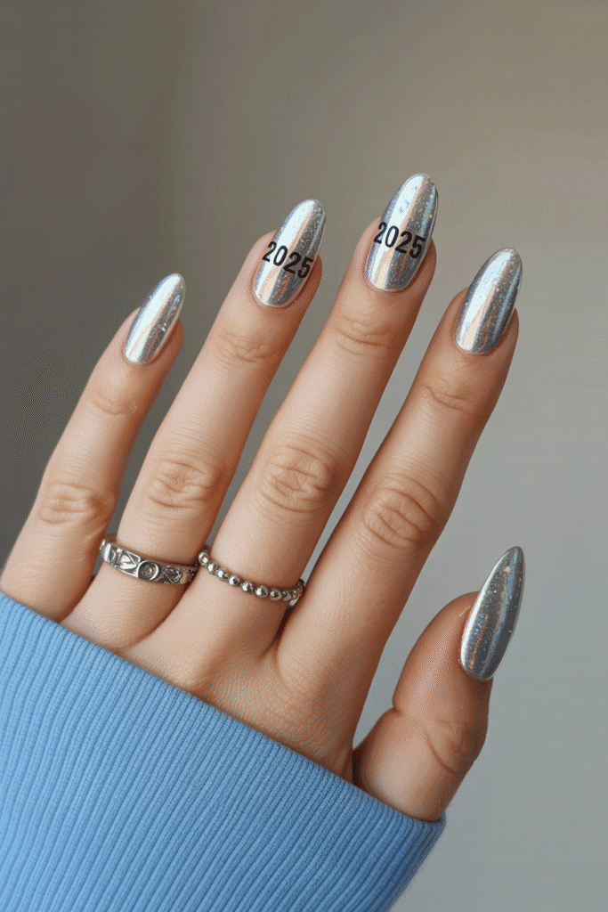 Zum Jahreswechsel darf es dann richtig krachen – auch auf den Nägeln! Hier sind Glitter, Chrome und auffällige Details gefragt. Die Top-Styles für Silvester 2025: