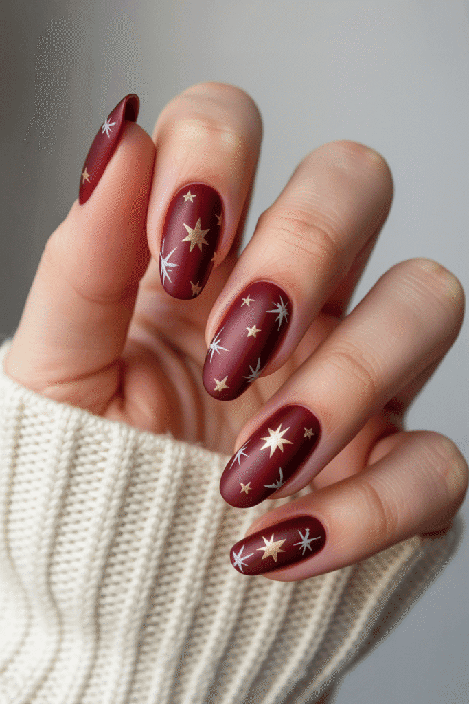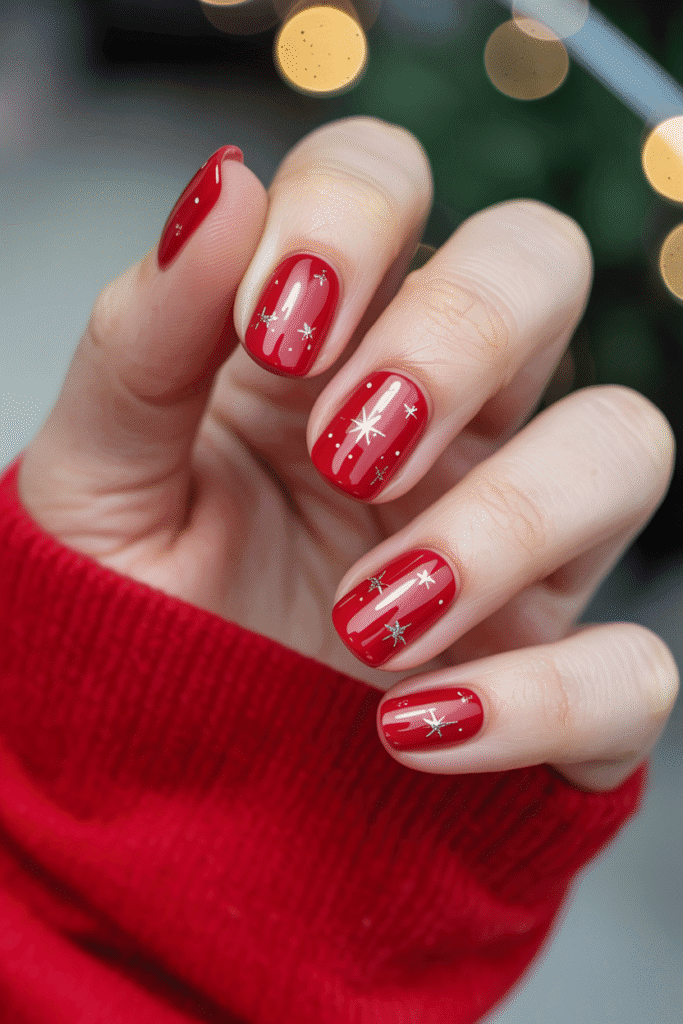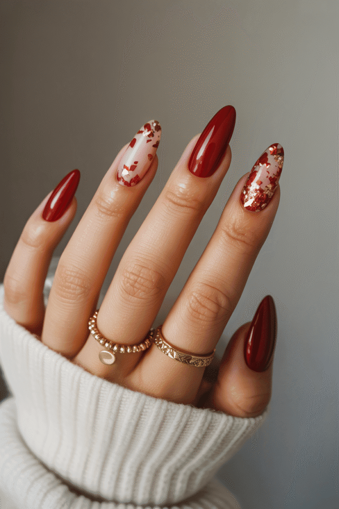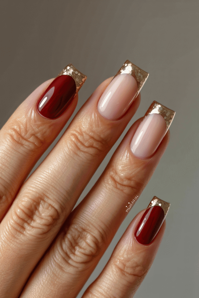Diese Farbtöne lassen sich wunderbar kombinieren – z. B. ein dunkles Rot mit feinem Gold-Glitter, oder ein schlichtes Nude mit silbernen Schneeflocken.
