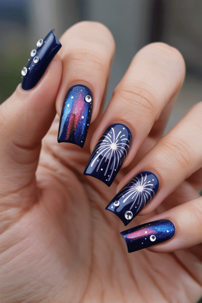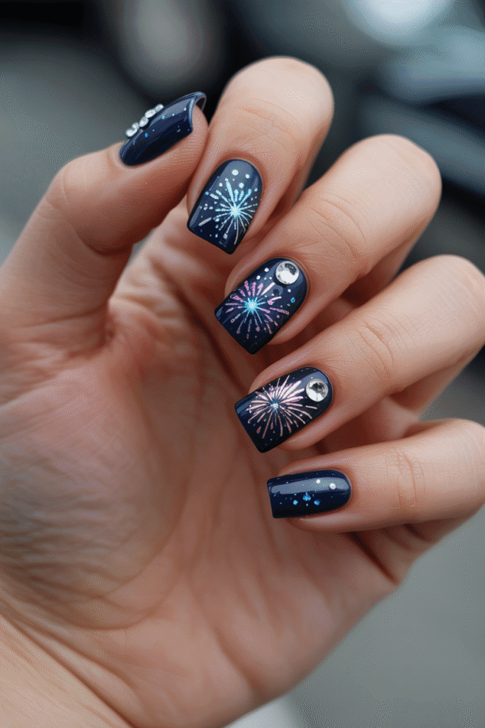 Nail Art mit Uhr- oder Feuerwerksmotiv