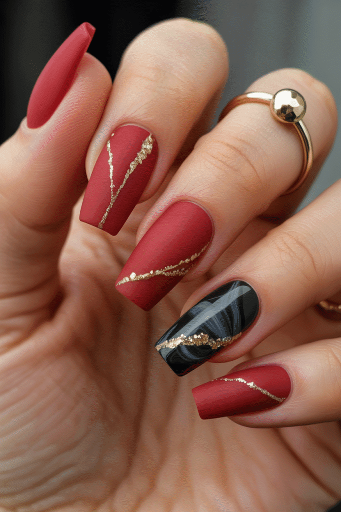 Besonders cool: Der Mix aus matten und glänzenden Finishes in derselben Farbfamilie – z. B. Matte Schwarz mit glänzendem Glitzertipp. Damit bist du garantiert der Star der Party. ✨