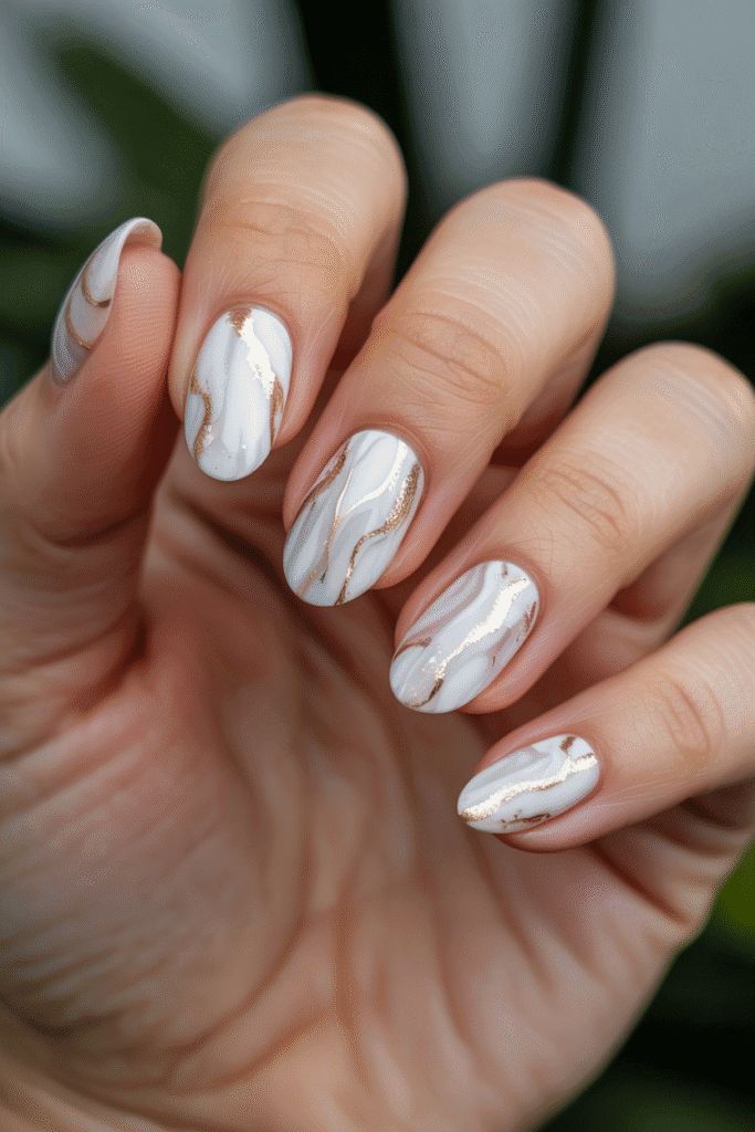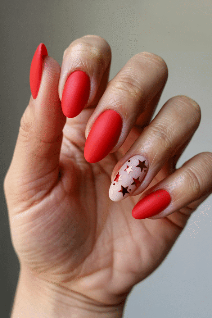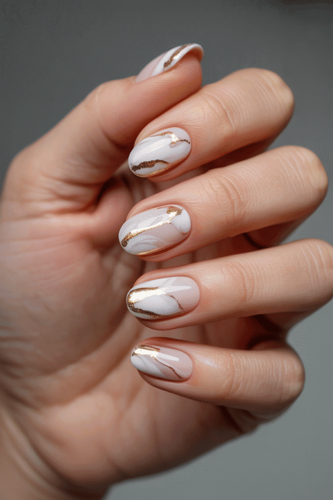 Wer seine Nägel dezent halten möchte, kann auf nude Farben mit einzelnen Glitzerakzenten oder kleinen goldenen Symbolen setzen – edel, elegant und absolut im Trend.